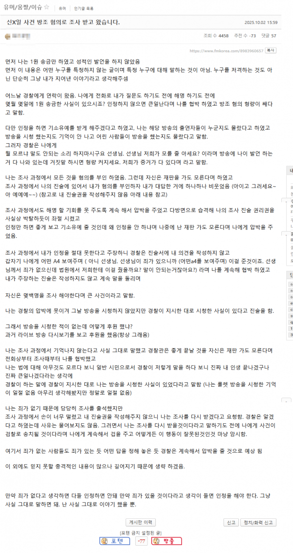 신xx사건으로 어떤 작성자의 억울하다고 하는 주장 뽀미 2 7 0 0 10.02 18:32 0 0 Author 0 0 Lv.26 뽀미 아이언 248,160 (71.1%) 등록된 서명이 없습니다.