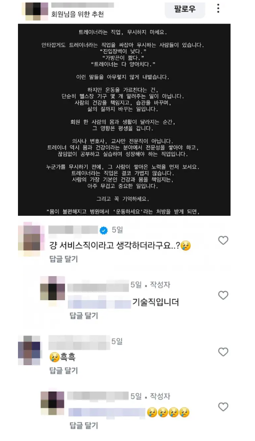 최근 벌어진 헬스 트레이너 기술직 논란.jpg 휘낭시에 1 175 1 0 09.30 17:59 그냥 서비스직같은데.. 1 0 Author 0 0 Lv.11 휘낭시에 아이언 46,000 (56.2%) 등록된 서명이 없습니다.
