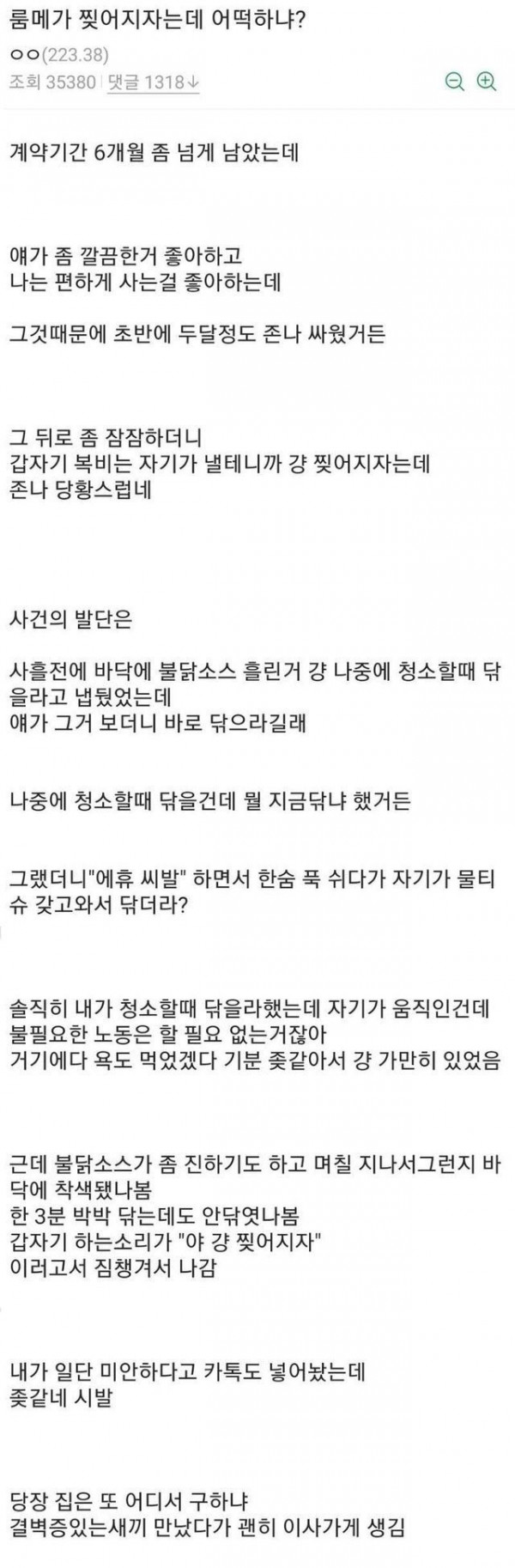 룸메가 찢어지자고해서 고민인 사연.jpg 타짜이진호 0 112 2 0 09.30 15:03 드러워 2 0 Author 0 0 Lv.27 타짜이진호 아이언 270,650 (89.3%) 등록된 서명이 없습니다.