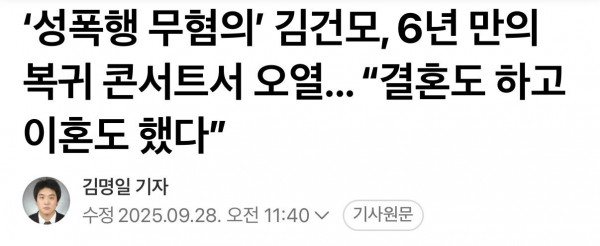 ‘성폭행 무혐의’ 김건모, 6년 만의 복귀 콘서트서 오열... “결혼도 하고 이혼도 했다”