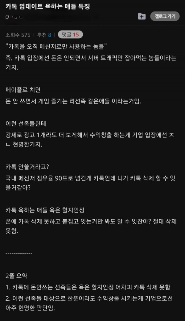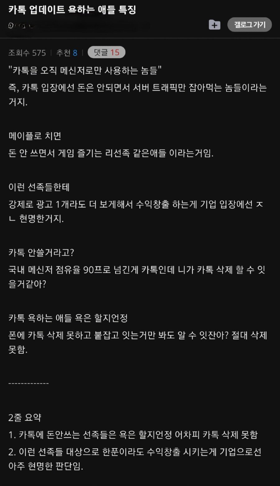 카톡 업뎃 강행 이유를 정확히 파악한 디씨글 뽀미 3 158 1 0 09.28 14:23 1 0 Author 0 0 Lv.26 뽀미 아이언 247,960 (70%) 등록된 서명이 없습니다.