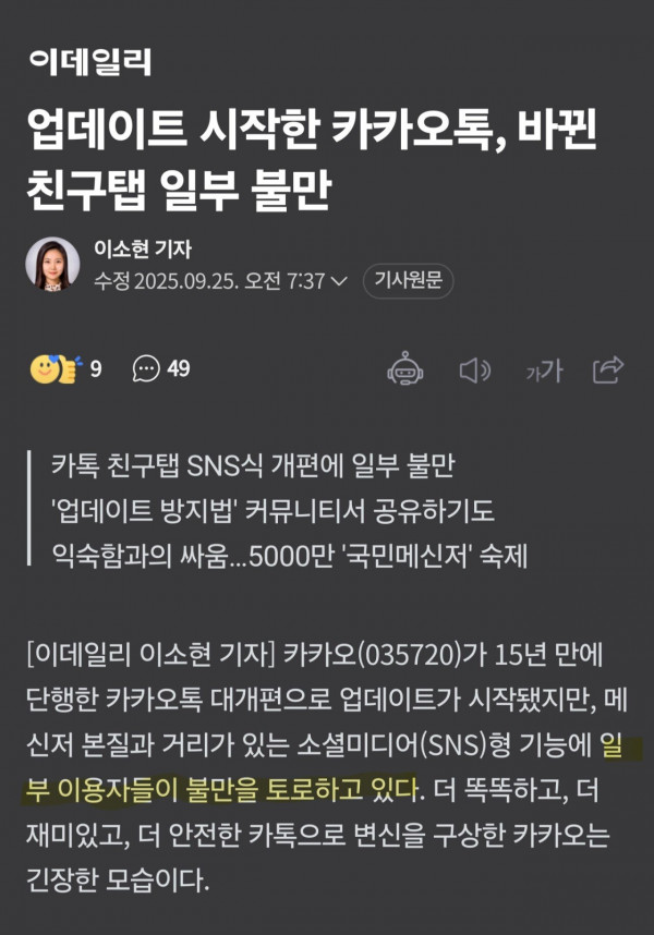 더 안전한 카카오톡... 일부 이용자 불만 뽀미 2 127 1 0 09.26 15:58 1 0 Author 0 0 Lv.26 뽀미 아이언 247,960 (70%) 등록된 서명이 없습니다.