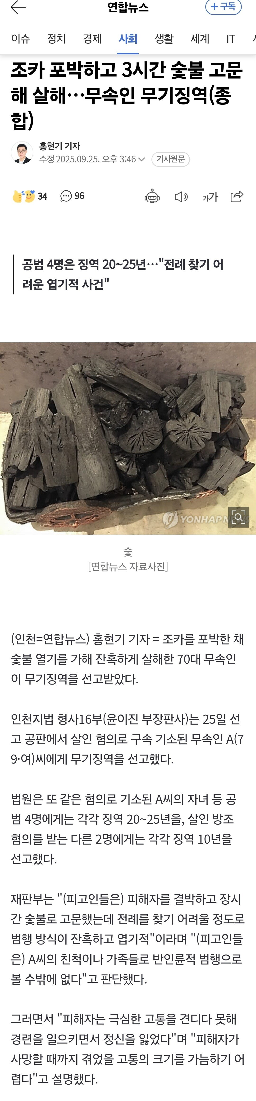 속보) 조카 포박하고 3시간 숯불 고문해 살해…무속인 무기징역 달천이 0 147 0 0 09.25 20:56 0 0 Author 0 0 Lv.28 달천이 아이언 288,830 (81%) 등록된 서명이 없습니다.