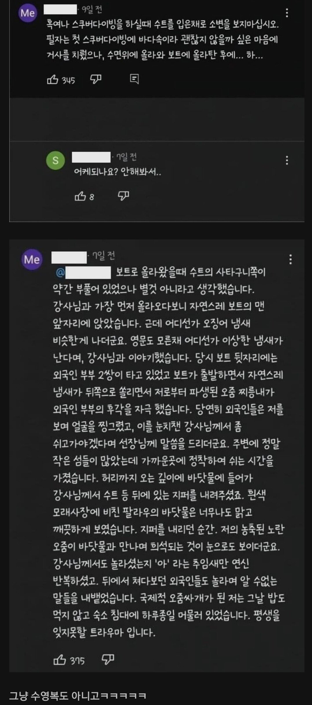 스쿠버다이빙 수트입고 오줌 싸지 마세요...jpg 다섯가지자 2 181 0 0 09.22 11:02 0 0 Author 0 0 Lv.30 다섯가지자 아이언 323,560 (48.6%) 등록된 서명이 없습니다.