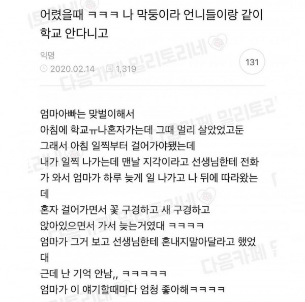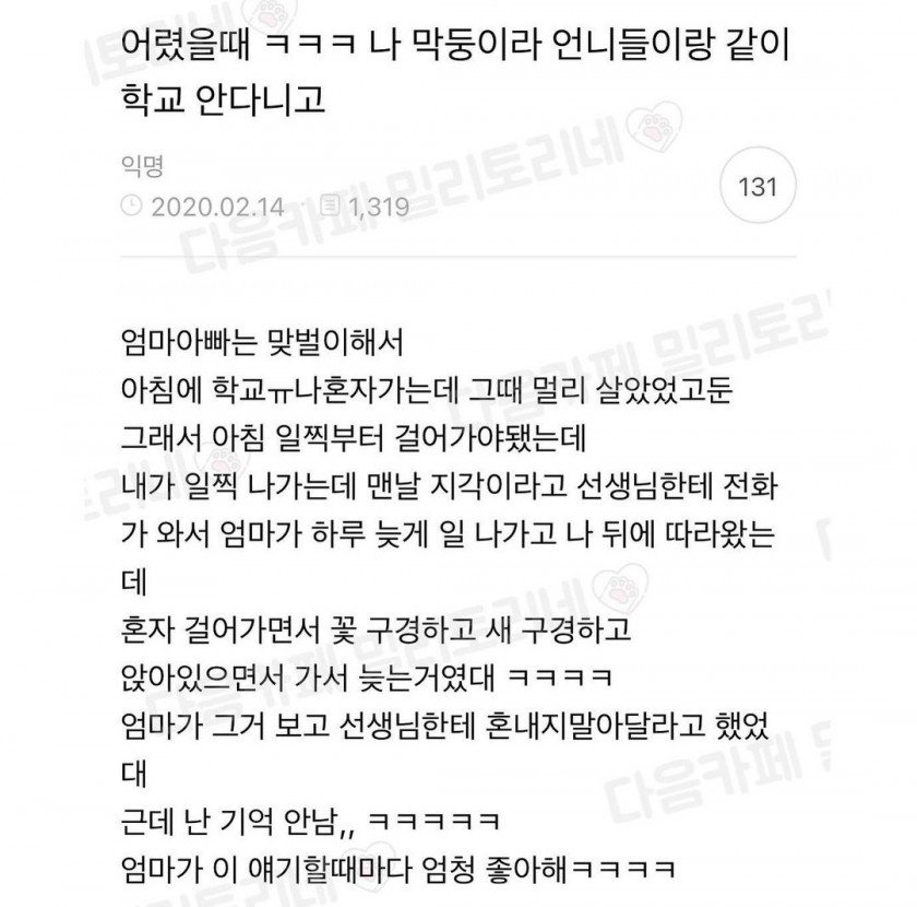 막둥이가 학교 매일 지각했던 이유