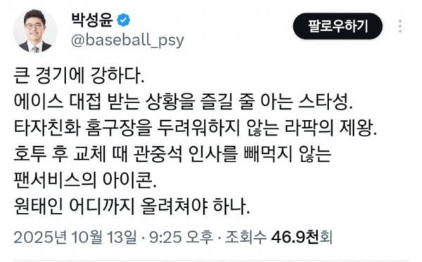 원태인 극찬하는 박성윤 기자 휘낭시에 1 5 0 0 6시간전 ㄹㅇ 라팍의 제왕 대 태 인 0 0 Author 0 0 Lv.12 휘낭시에 아이언 53,800 (49.4%) 등록된 서명이 없습니다.