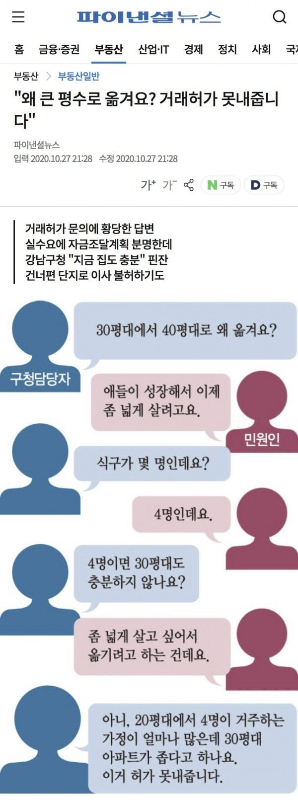 "왜 큰 평수로 옮겨요? 거래허가 못내줍니다"
