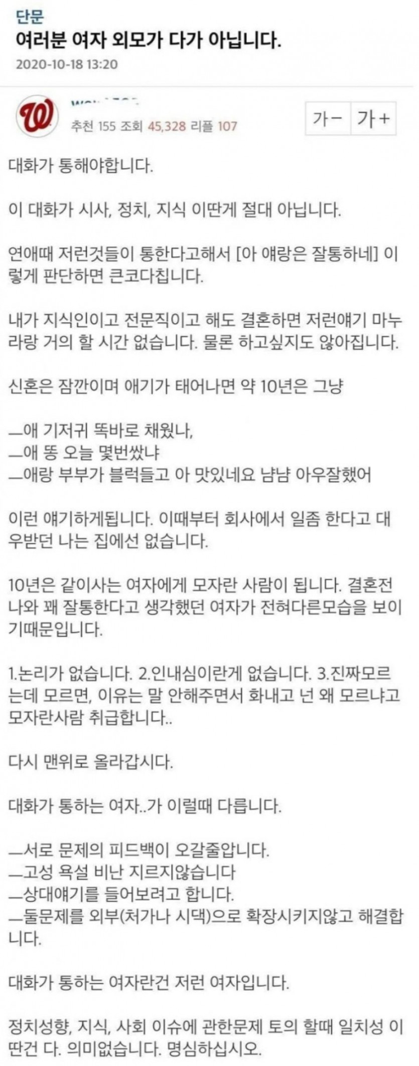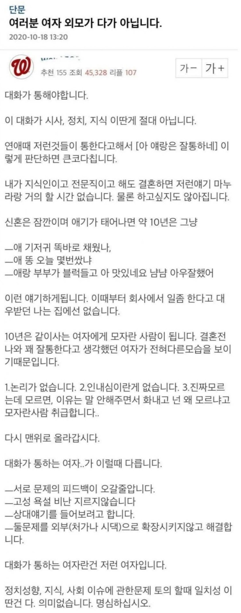 (고전) 결혼생활에 외모가 다가 아니라는 유부남의 조언