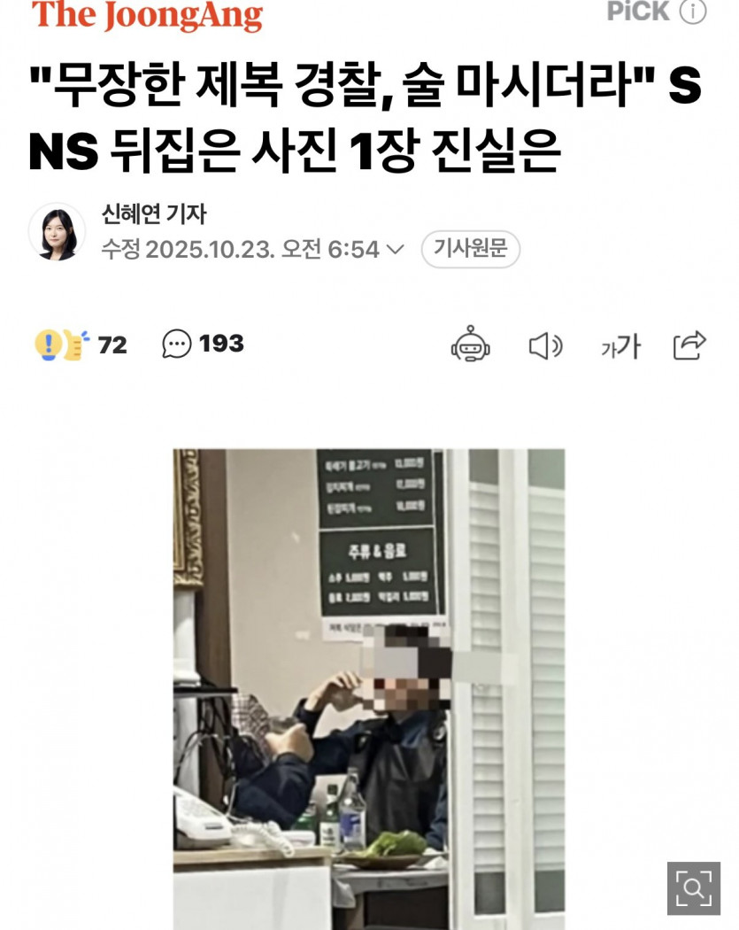 "무장한 제복 경찰, 술 마시더라" SNS 뒤집은 사진 1장 진실은