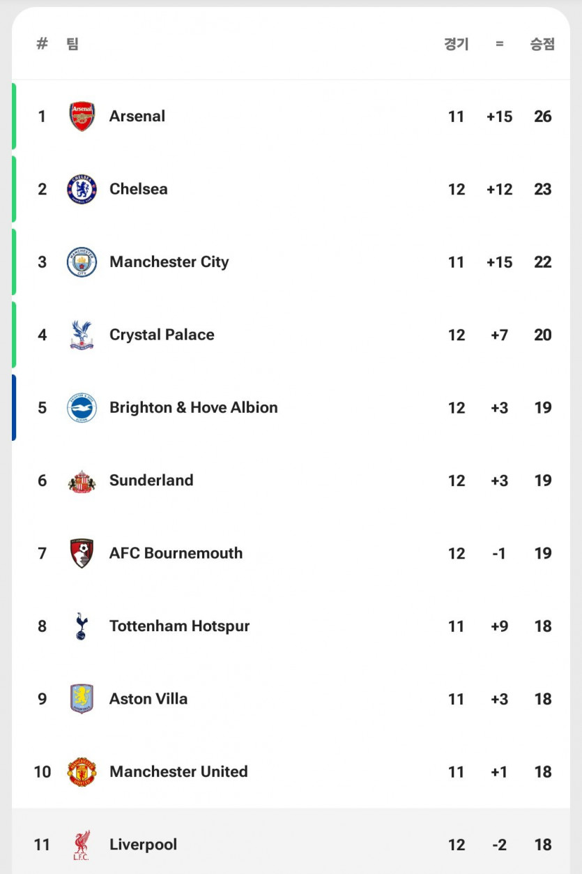 실시간 리버풀 순위 근황