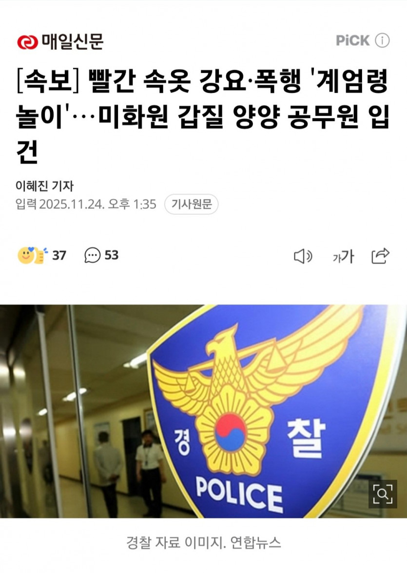 [속보] 빨간 속옷 강요·폭행 '계엄령 놀이'…미화원 갑질 양양 공무원 입건