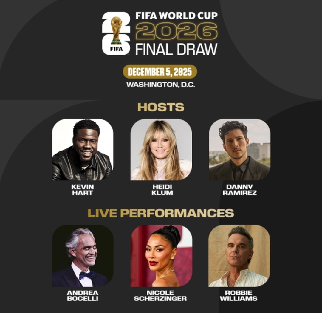 [오피셜] 2026 미국 월드컵 조추첨 진행 라인업 ㄷㄷㄷㄷㄷㄷ 다섯가지자 3 60 12.04 09:19 호스트케빈 하트, 하이디 클룸, 데니 라미레즈 축하공연안드레아 보첼리, 니콜 셰르징어, 로비 윌리엄스레드카펫쇼 호스트일라이 매닝조추첨 진행자리오 퍼디난드, 사만다 존슨 조추첨 도우미톰 브래디, 웨인 그레츠키, 애런 저지, 샤킬 오닐도우미 라인업보소ㄷㄷㄷㄷ