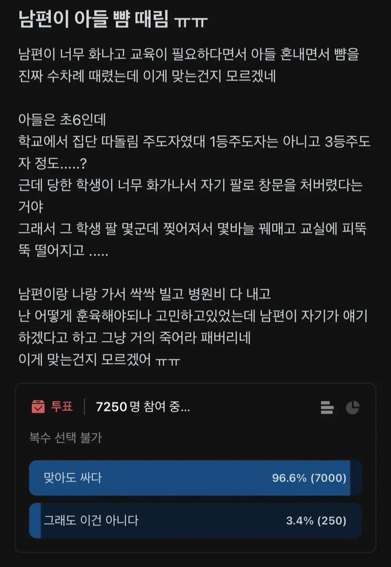 남편이 아들 뺨 때렸다고 징징대는 애엄마