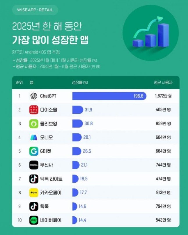 [오피셜] 2025년 가장많이 성장한앱 TOP10 발표