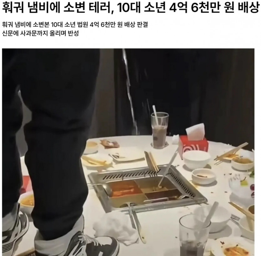 법원은 가해자에게 식기 교체비와 경영 손실 등을 포함해 약 4억 6,000만 원의 배상을 명령했다. ㄷㄷㄷ