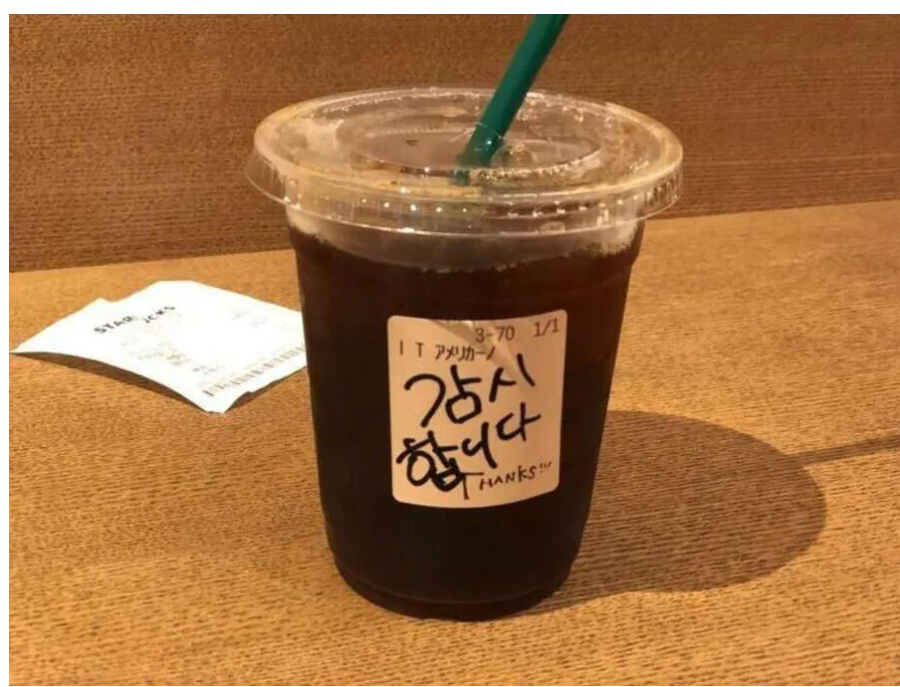 한국인 손님에게 메모를 남긴 일본 스타벅스.