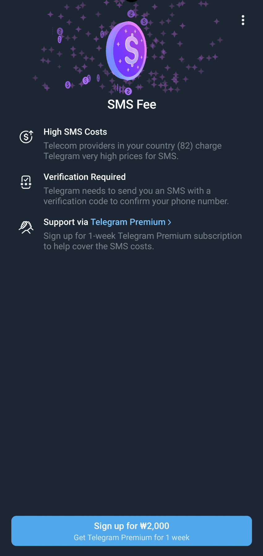 핸드폰이 변경되며 ㅌㄹ그램 인증 받을수없는 사람들 포함 신규가입 +재설치시 문자인증을 ㅌㄹ그램에서 거부함 스샷과 같은 구매유도 팝업이 뜨면서 우회 진행이 안됨. 이놈들이 돈독이 올랐나 하고 찾아보니 해외에선 이런글 일절 없음. 본문 읽어보니 한국(82) 에선 SMS 인증 시 과다한 비용 부과 2천원짜리 프리미엄 가입해야 문자인증 해주겠다 라는 입장임. 통신사가 기업에게 삥뜯던게 결국 소비자에 전가되는 상태임 ㅇㅇ 트위치 생각나네