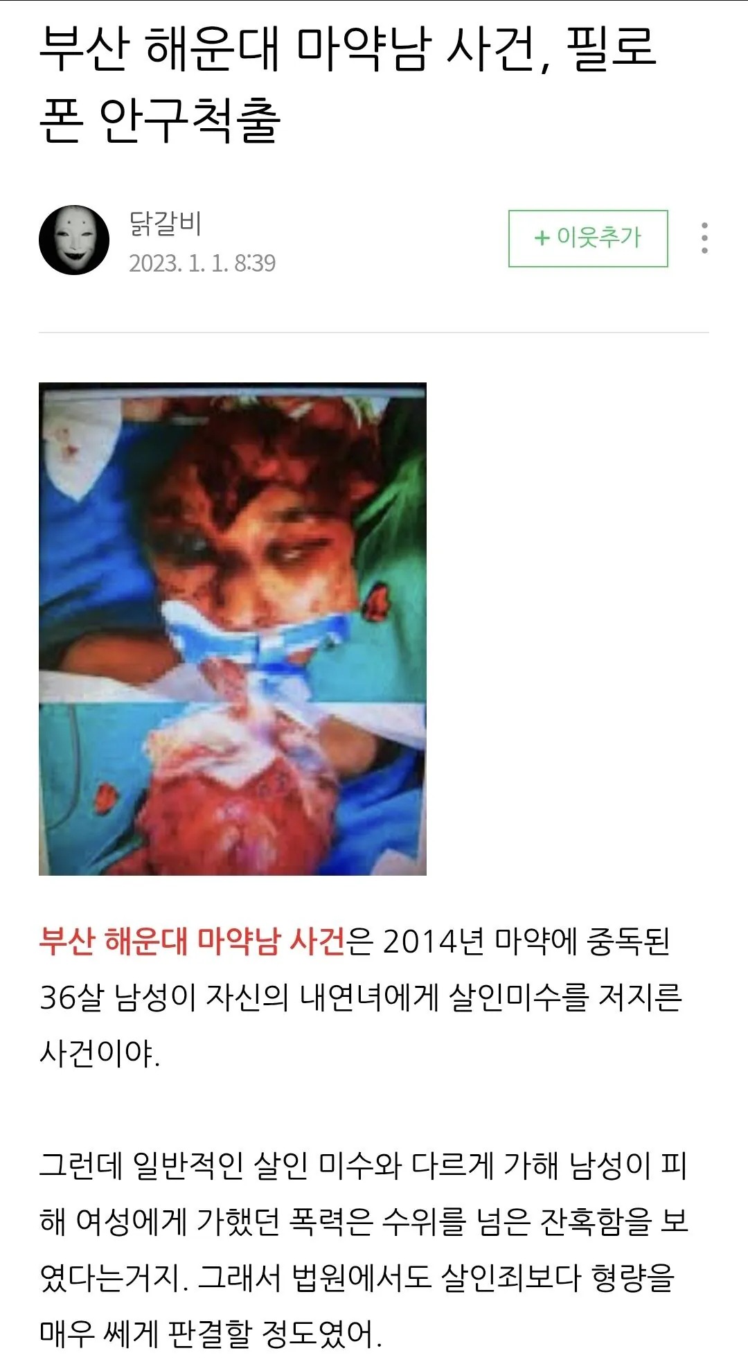 혐오) 부산 해운대 마약남 사건, 필로폰 안구척출