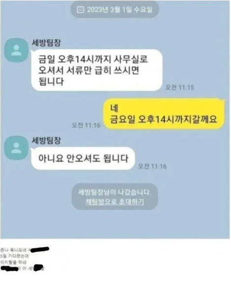 카톡 한줄에 입사 취소
