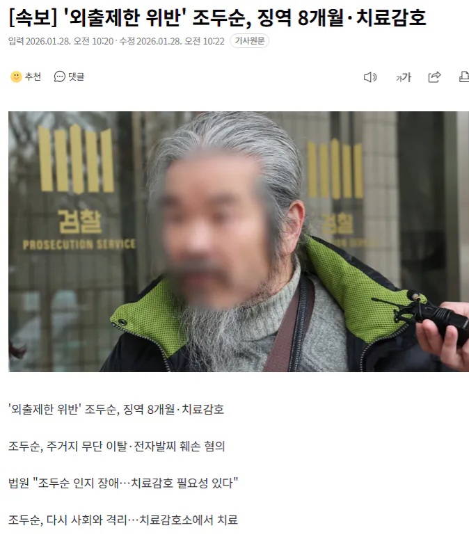 속보] '외출제한 위반' 조두순, 징역 8개월·치료감호