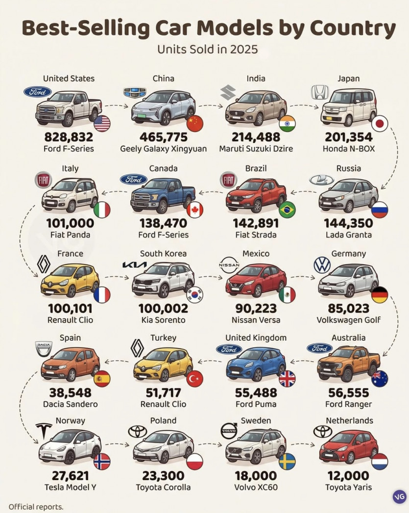 국가별 가장 많이 팔린 자동차.