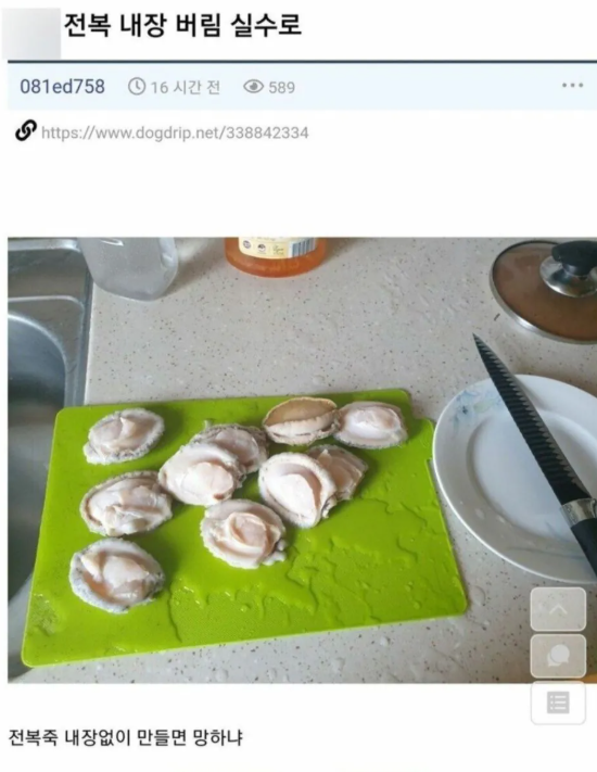 전복죽 만들려는데 실수로 내장 버림