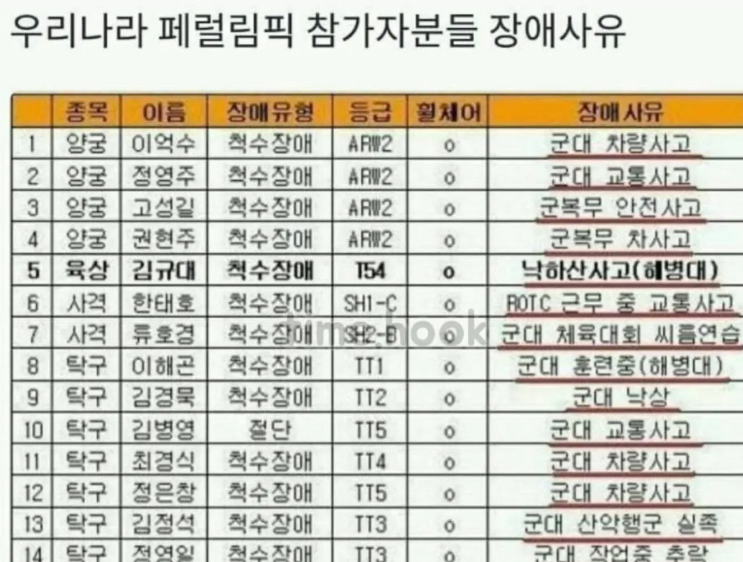 패럴림픽 참가자 장애사유