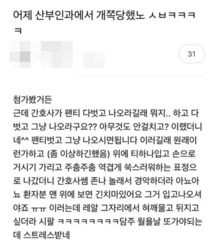 간호사가 팬티벗고 나오라길래