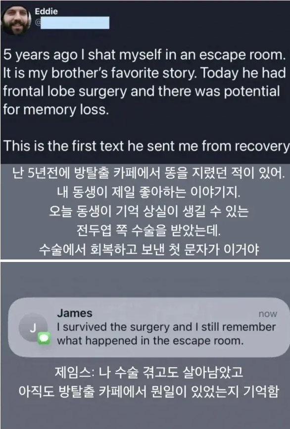 위험한 뇌수술을 마친 동생이 보낸 문자.jpg