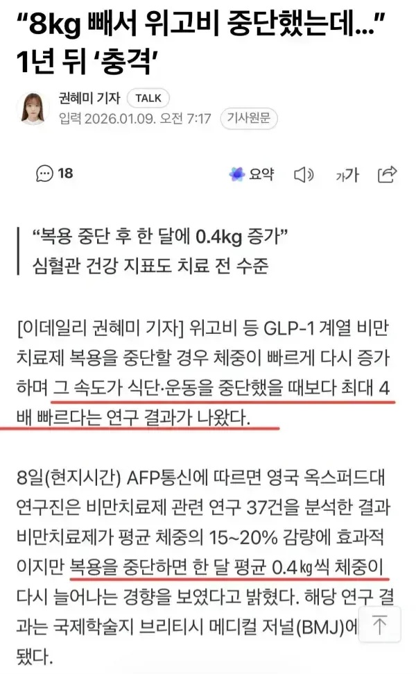 위고비 중단 후 1년 뒤 생긴 일