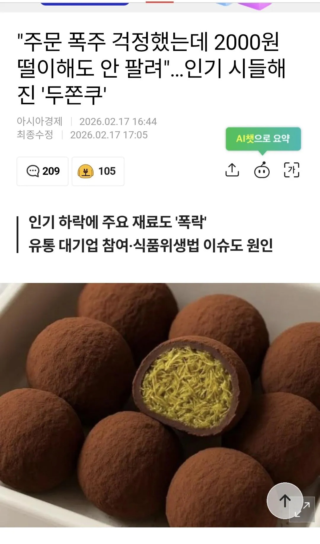주문 폭주 걱정했는데 2000원 떨이해도 안 팔려"…인기 시들해진 '두쫀쿠