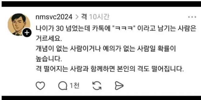 나이 30 넘었는데 "ㅋㅋㅋ"쓰는 사람 거르세요