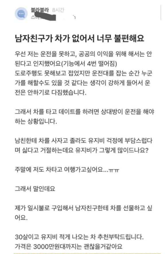 남자친구 차가 없어서 불편해요