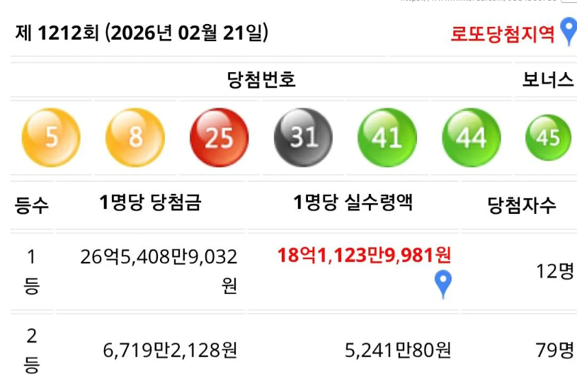 이번주 로또 1등 2등 실수령액