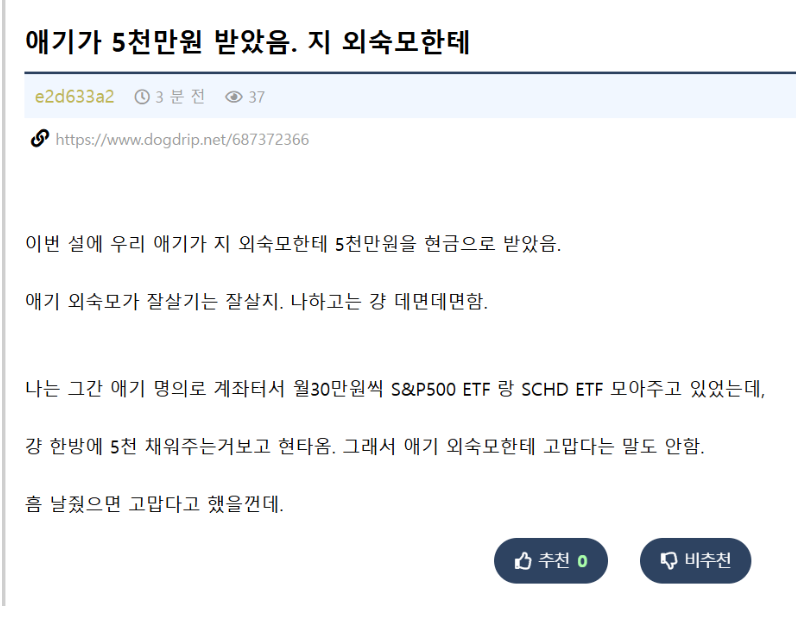 애기가 외숙모한테 5천만원을 받았지만 감사인사를 안했다는 사람.jpg