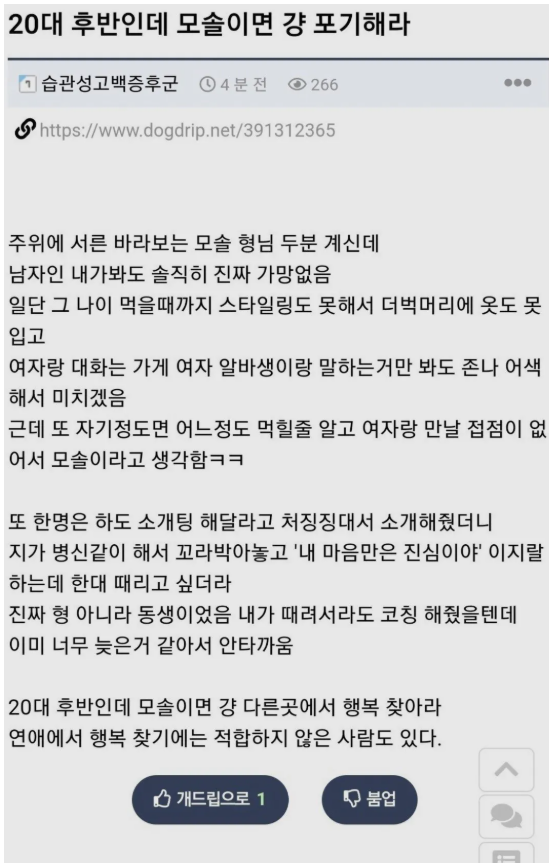 20대 후반인데 모쏠이면 걍 포기해라