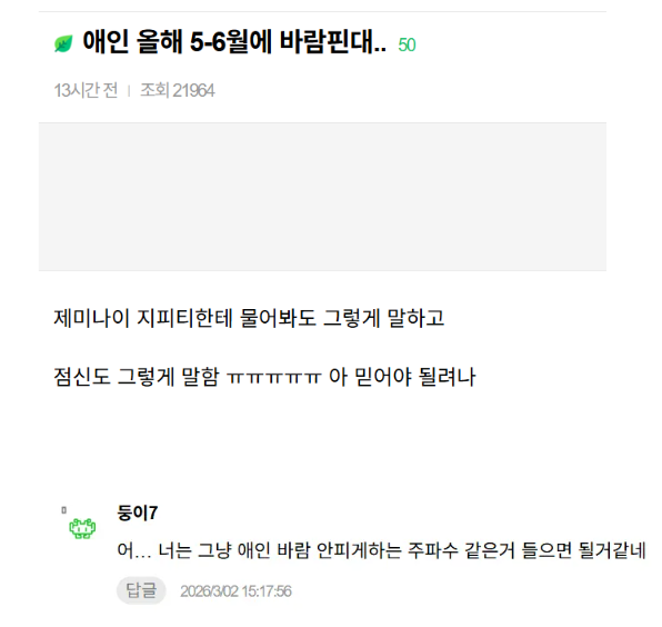 애인 올해 5~6월에 바람핀대...