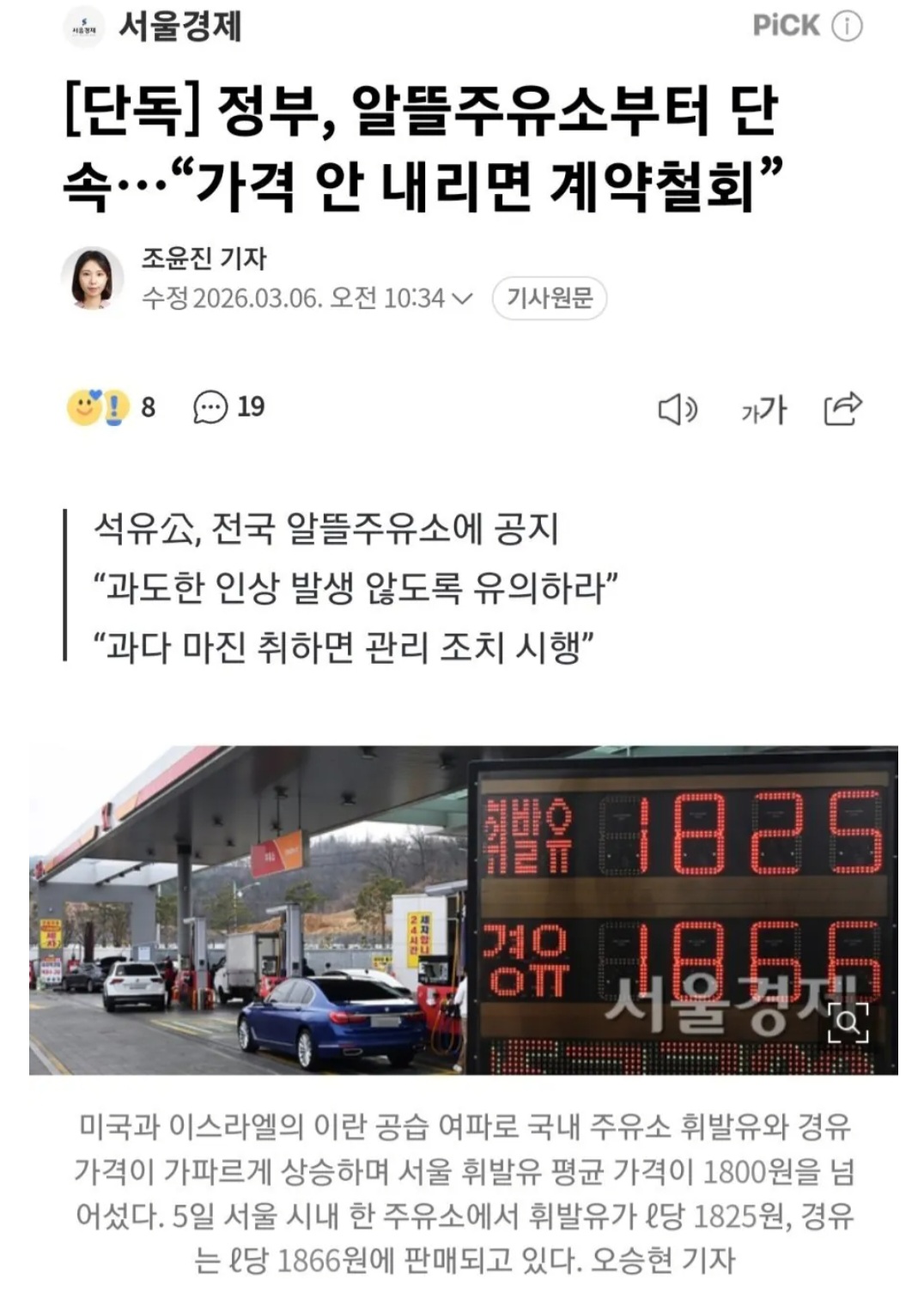 정부 알뜰주유소부터 정밀 타격 ㄷㄷㄷ