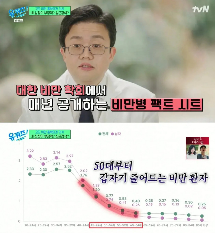 40대 중후반 부터 비만환자가 줄어드는 한국 ?