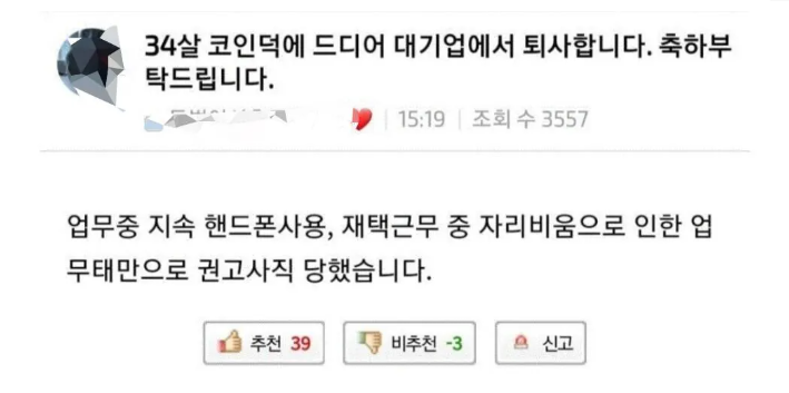 34살 코인덕에 드디어 대기업에서 퇴사합니다. 축하부탁드립니다.