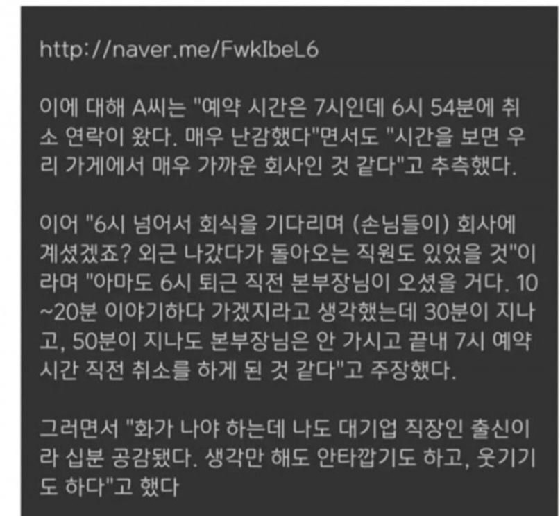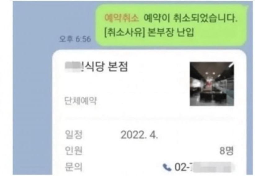 식당 예약 6분전 취소한 손님