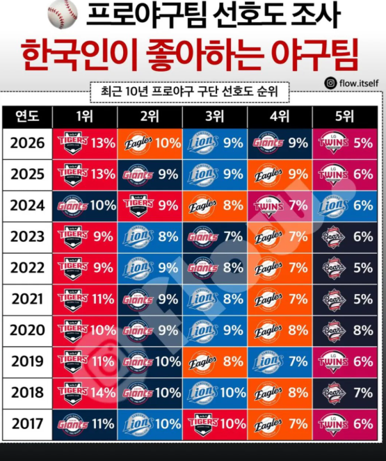 한국인이 좋아하는 야구팀
