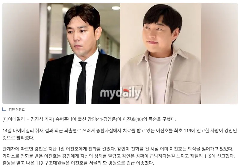 강인, 뇌출혈로 쓰러진 이진호 목숨 구했다