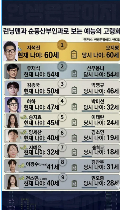 런닝맨과 순풍산부인과로 보는 예능의 고령화