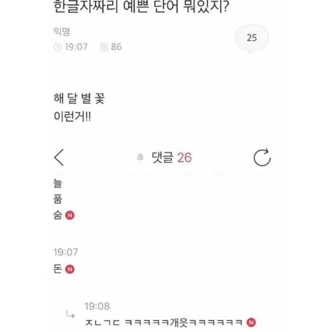 한글자 예쁜 단어 뭐있어?