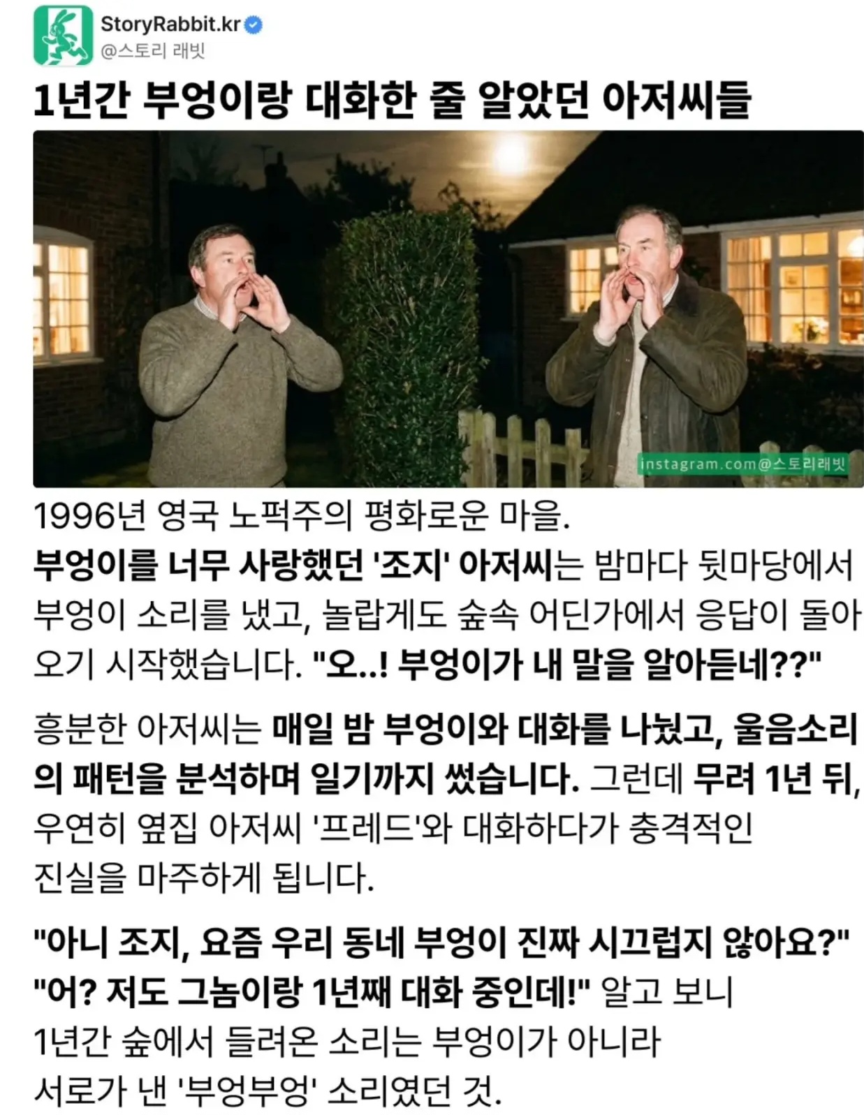 1년간 부엉이랑 대화한 줄 알았던 아저씨들