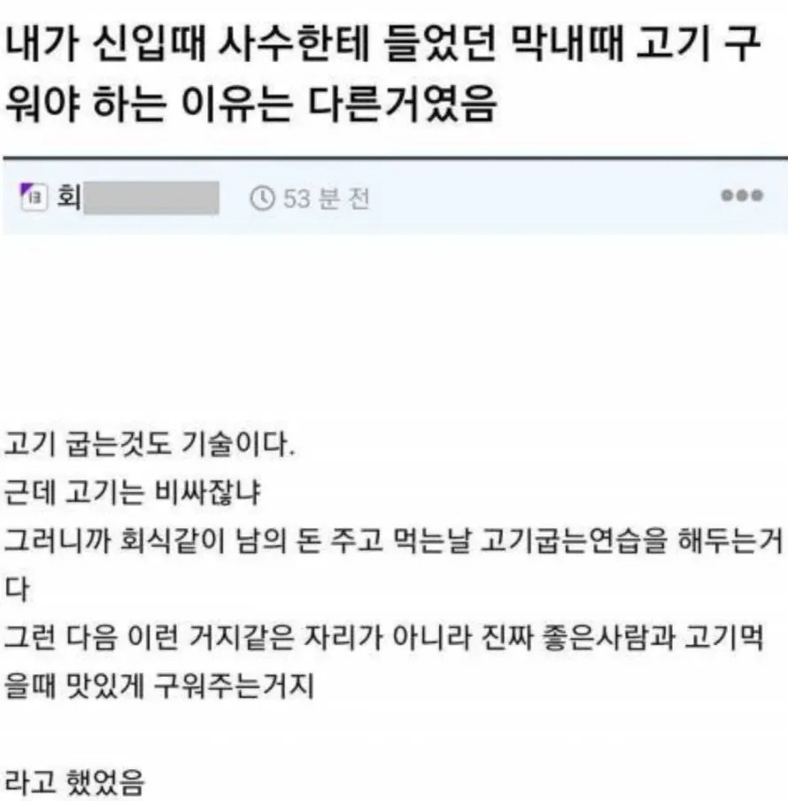 회사 막내때 고기 구워야하는 이유