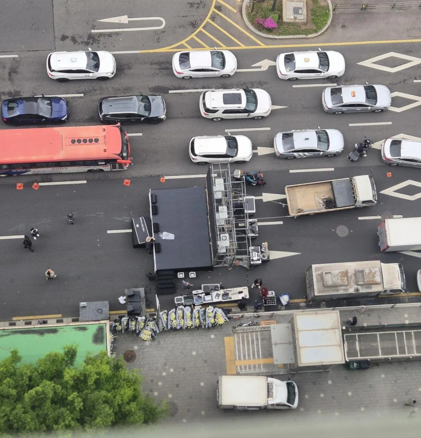 사망한사람은 열사라고 표현하고 건물 입구는 화환으로 도배함
