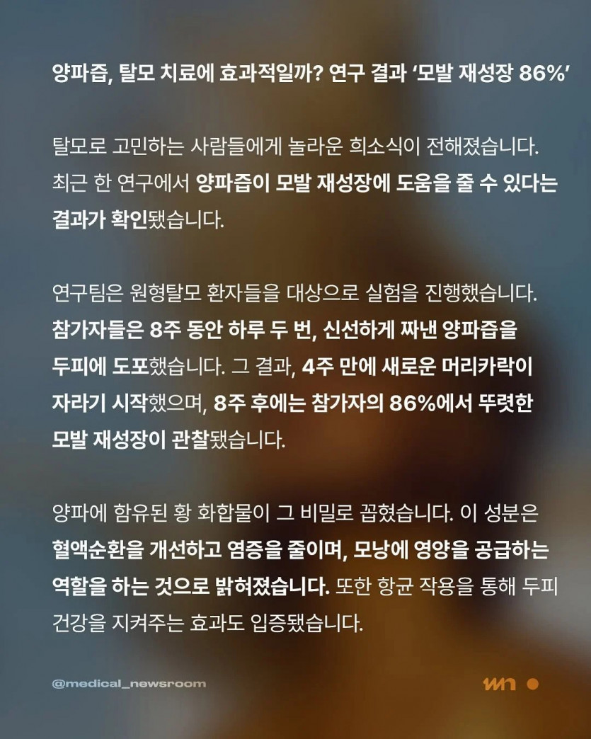 양파즙의 효능 탈모에 탁월