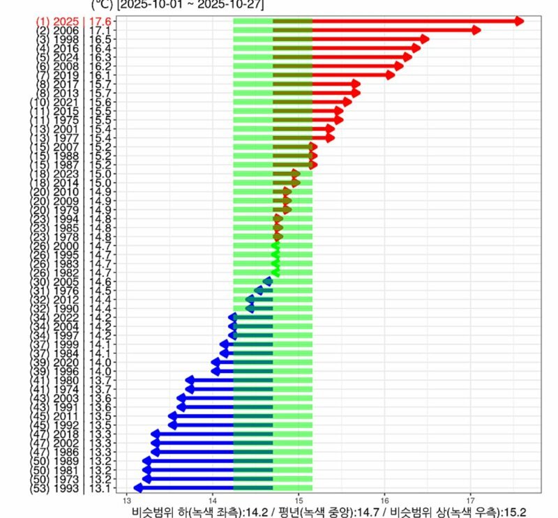 10월 평균기온 "놀랍게도 올해가 역대 1위"